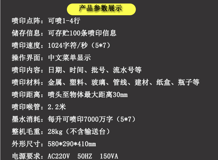 噴印字符包括中英文字符、阿拉伯數(shù)字、批號、標點符號及各種特殊圖形