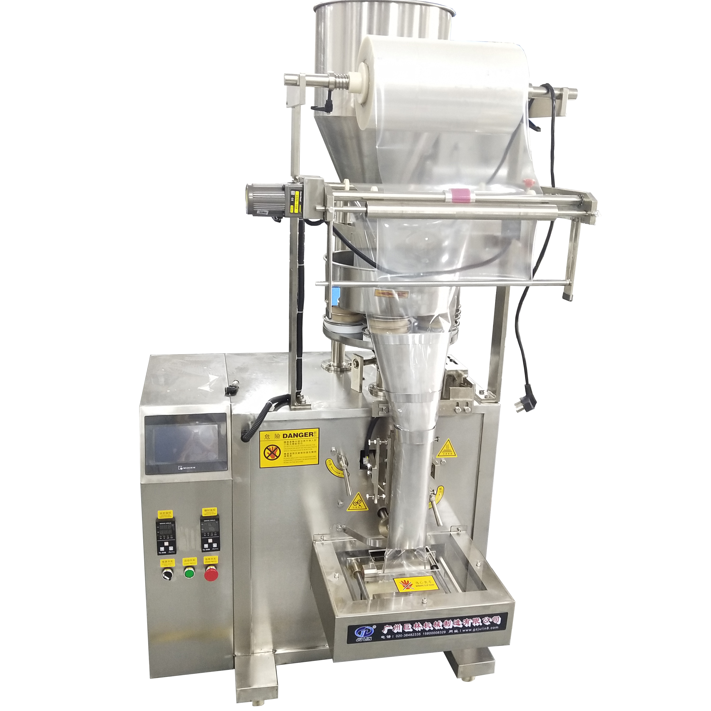 自動(dòng)完成制袋,計(jì)量,充填,封合,斷切,計(jì)數(shù),打印批號(hào)