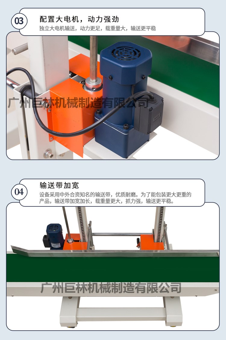 7包裝物進(jìn)入輸送臺(tái)時(shí)必須貼著護(hù)欄,包裝袋口一旦被引導(dǎo)帶拖入后,輸送帶與封口傳動(dòng)同步進(jìn)行封口包裝,此時(shí)請(qǐng)不要對(duì)包裝物任意推動(dòng)或阻擋,以免造成封口效果不良。