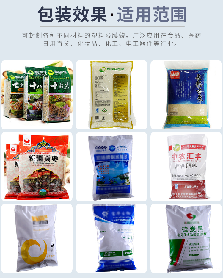 本機(jī)適用于任何以熱封材料的封口。速度無(wú)級(jí)可調(diào),恒溫控制,溫度可調(diào),輸送臺(tái)高低可調(diào),適應(yīng)范圍極廣泛。